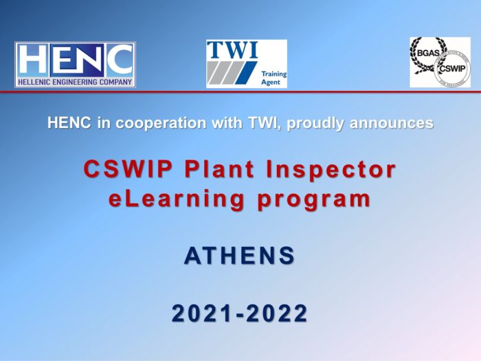 Αγαπητοί συνάδελφοι, με ιδιαίτερη χαρά σας ενημερώνουμε πως η εταιρία μας θα υλοποιήσει στην Αθήνα , το πρόγραμμα εκπαίδευσης και πιστοποίησης CSWIP 3.1 Welding Inspector (Level 2). Το πρόγραμμα θα ξεκινήσει στις στις 04 Απριλίου 2022 Λόγω των συνθηκών της πανδημίας η εκπαίδευση θα γίνει ως εξής: Τηλεκπαίδευση τις 3 πρώτες ημέρες μέσω της πλατφόρμας Zoom, ώρες 10:45-18:45 Εκπαίδευση με…